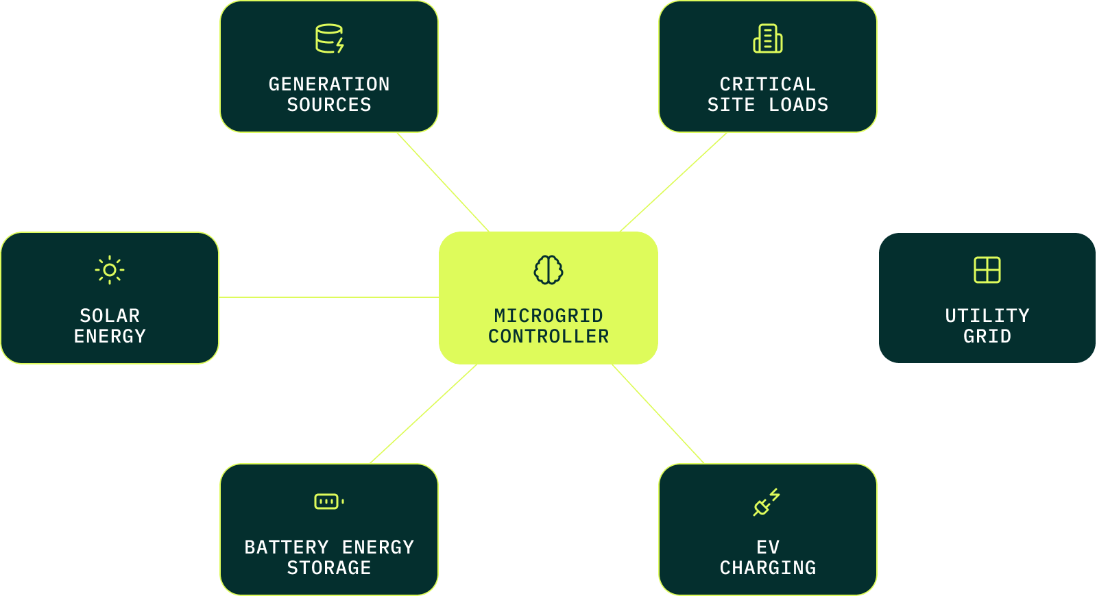 During a utility power outage, the microgrid controller isolates (or “islands”) your facility from the grid, switching to self-generated and/or stored power to keep critical operations running.
